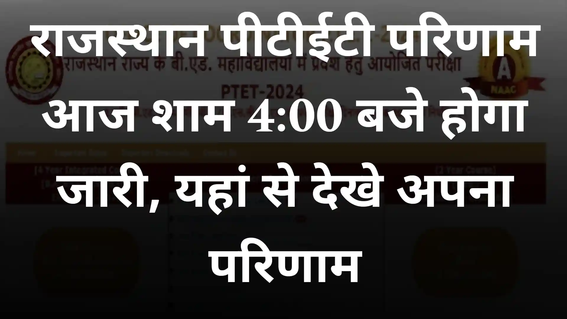 Rajasthan PTET Result Jari राजस्थान पीटीईटी परीक्षा परिणाम कर दिया जारी, यहा से करे चेक